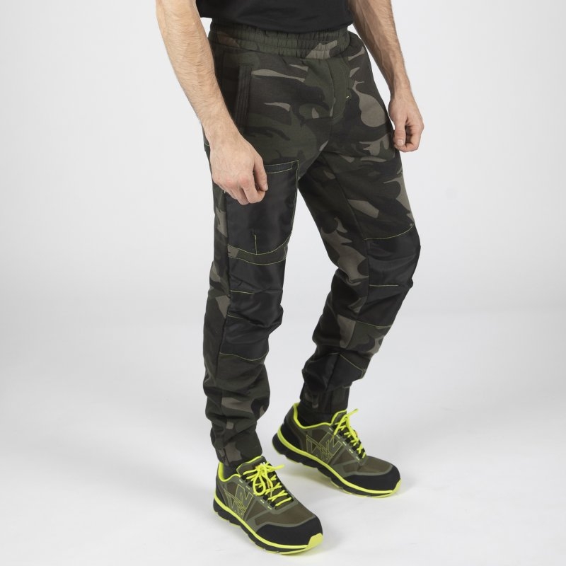 Sestava: Glavna tkanina: 65 % poliester / 35 % bombaž - 350 g/m² - flis Stranski materiali: Ojačitve: 600D Oxford s PU premazom - 100 % poliester - 250 g/m² - flis Specifikacije: Ojačitve na kolenih, žepih in spodnjem delu nog Elastičen pas Zategovalna vrvica 5 žepov: 2 žepa 1 žep z zadrgo 2 nalepna žepa 1 zanka za trak 1 zanka za orodje