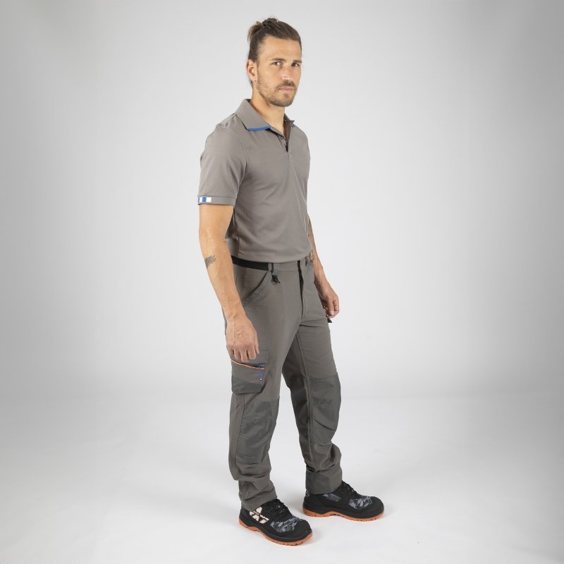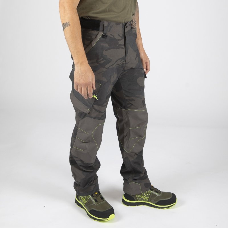 SESTAVA: Glavna tkanina: 65 % poliamid / 30 % poliester / 5 % elastan - 155 g/m² Sekundarni material(i): 600D Oxford ojačitve s PU prevleko, 100 % poliester - 250 g/m² SPECIFIKACIJE: Ojačitve za kolena z vnaprejšnjim oblikovanjem Embosiran elastičen pas 10 žepov: 2 italijanska žepa 2 žepa z gubo in zavihki 1 žep za zložljivo ravnilo 2 žepa z zadrgo 3 našiti žepi 1 zanka za merilni trak 1 zanka za orodje Trojni šivi Odsevni detajli