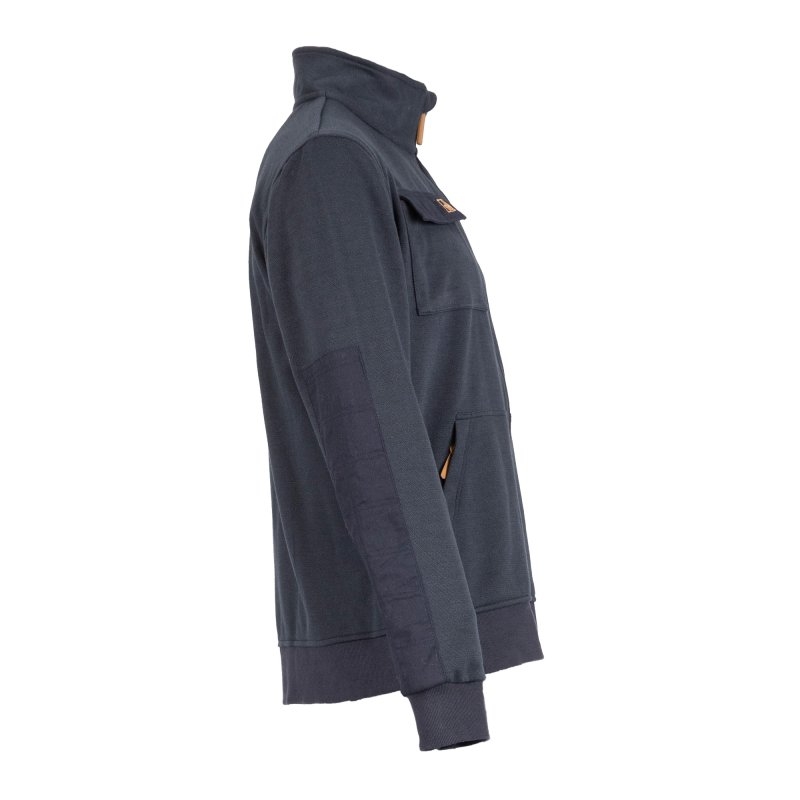 Sestava: Glavna tkanina: 100 % poliester - 300 g/m² - šivana mreža Stranski material: 100 % poliester - 160 g/m² - tvil Specifikacije: Visok ovratnik Pokrov za brado Ojačitev na komolcih 2 žepa z zadrgo 1 žep na prsih