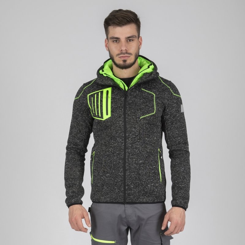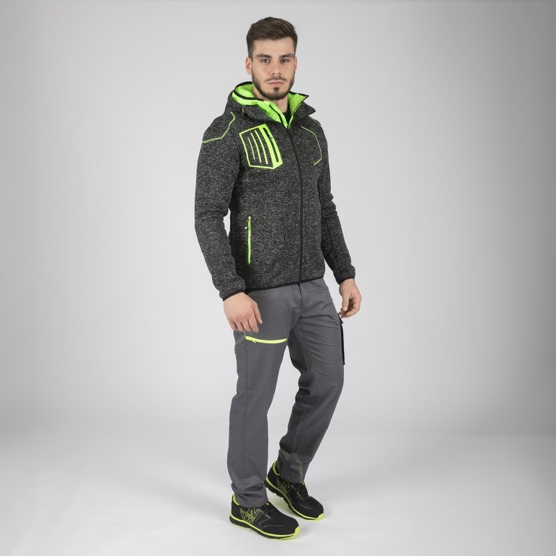Sestava: Glavni material: 100% poliester - 290 g/m² - pletena mreža Sekundarni material: Oblazinjen material, 100% poliester - 270 g/m² Specifikacije: Dvojna kapuca Visok ovratnik Zaščita za brado Elastični zaključki 5 žepov: 3 žepi z zadrgo 2 notranja žepa