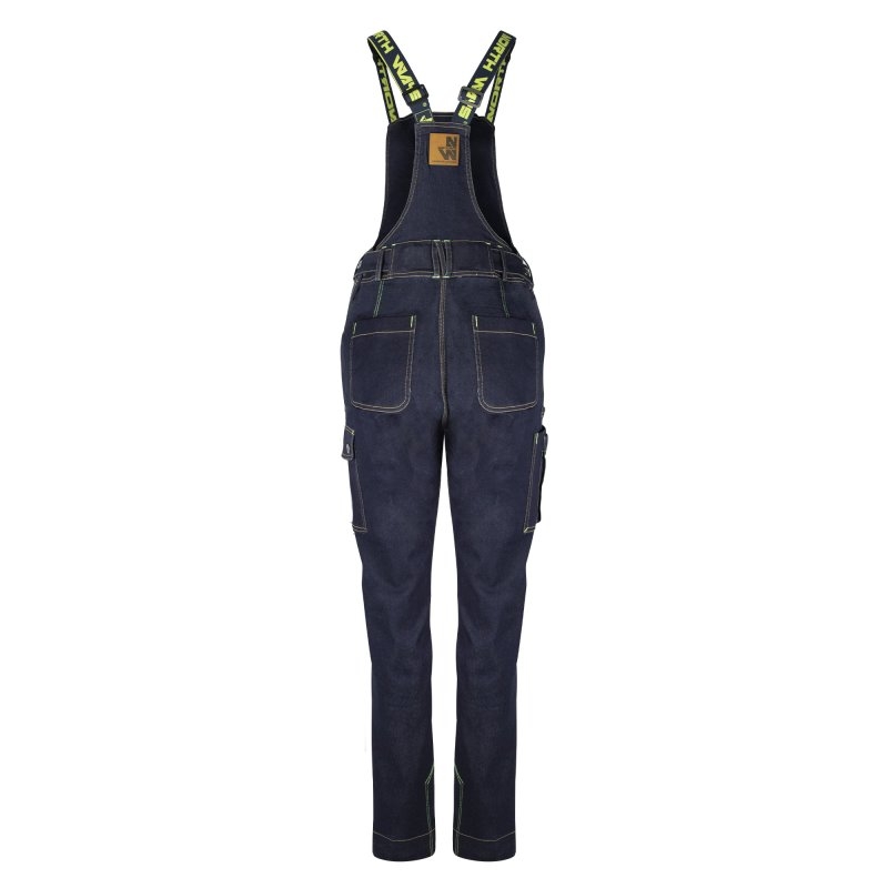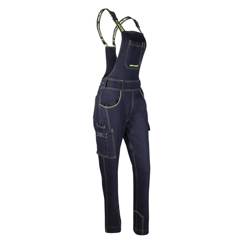 Sestava: Glavna tkanina: 73 % bombaž / 25 % poliester / 2 % elastan - 250 g/m² - DENIM JOGG Specifikacije: Nastavljiv pas D-MOOV 9 žepov: 1 nalepni žep 1 žep za svinčnik 2 stranska žepa 2 žepa z razširitvijo 2 nalepna žepa 1 žep za merilni trak 1 žep za kartice Kontrastno trojno šivanje Nastavljivi elastični naramnice Nastavljiv rob