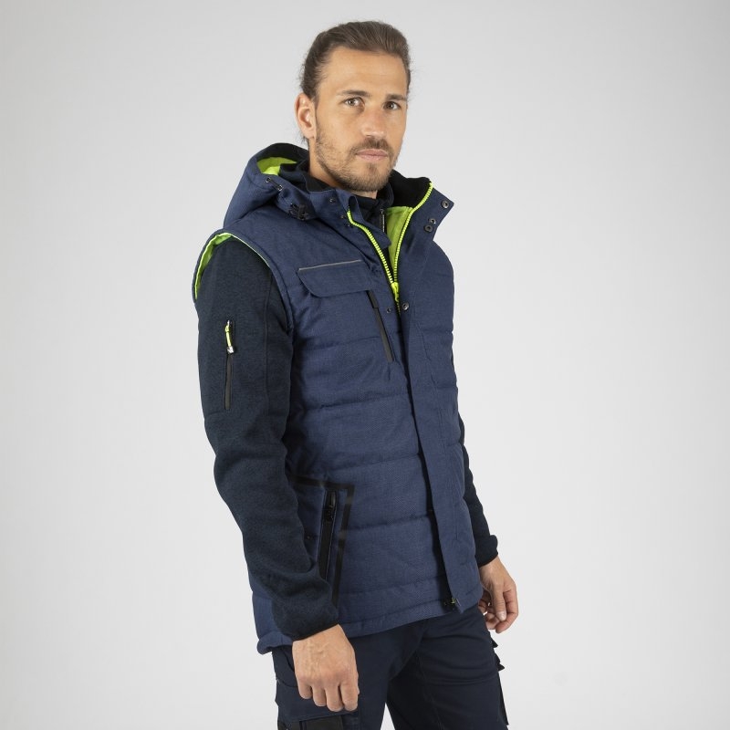 Sestava: Glavni material: 100% poliester prevlečen s PVC - 210 g/m² - serž Sekundarni materiali: Oblazinjen material, 100% poliester - 220 g/m² Specifikacije: Vodoodpornost 5000 mm Zračnost 2800 mvp Odstranljiva in nastavljiva kapuca Visok ovratnik Notranji pleteni ovratnik Dolg hrbtni del 4 žepi: 1 žep z zadrgo 2 vodoodporna žepa z zadrgo 1 notranji žep Notranja zadrga za personalizacijo