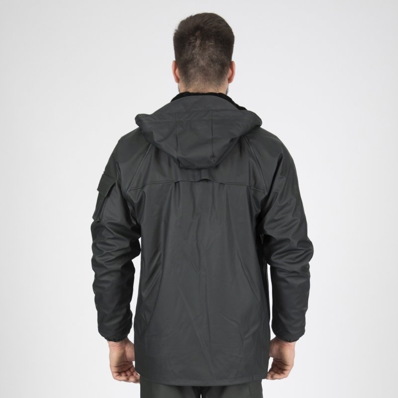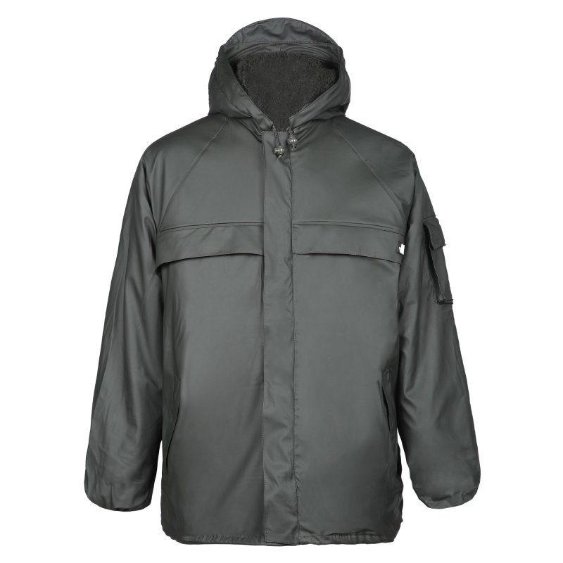 Sestava: Glavna tkanina: 50 % PU / 50 % PVC - 400 g/m² - vodoodporna tkanina s premazom Stranski material: Odstranljiva SHERPA podloga - 100 % poliamid - 350 g/m² Specifikacije: Lepljeni in vodoodporni šivi Nastavljiva kapuca Ventilacija na hrbtu Elastični manšeti 6 žepov: 3 nalepni žepi z letvicami 2 žepa z zadrgo 1 notranji žep